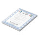 This fun notepad features a light blue plaid background with primary colour crayon accents and a template to simply writing school notes/excuses to send in to school. Personalise names and contact info. See our School Supplies section for more designs and for templates for mutliple children.
