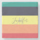 Primary Rainbow Colour Block Stripe Monogram Name Stone Coaster