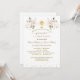 Invitación Primera Comunión. Elegant card design featuring watercolour delicate pink flowers, faux gold outlined roses, a faux gold shining cross, faux gold confetti, on a white background. Use Personalize tool to add your info. For matching items, please, visit my Elegant Baptism Christening Collection.
