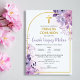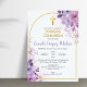 Haz que la Primera Comunión de tu hijo sea especial con esta linda y elegante invitación. Adornada con flores moradas y una cruz dorada, captura la esencia de una ceremonia religiosa católica.