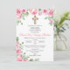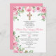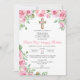 Haz que la Primera Comunión de tu hijo sea especial con esta linda y elegante invitación. Adornada con rosas rosadas y una encantadora cruz, captura la esencia de una ceremonia religiosa católica.