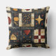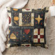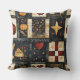 This throw pillow showcases a rustic quilt-inspired patchwork pattern with warm autumn motifs. The squares feature pumpkins in red and orange, red hearts, gold stars, autumn leaves, chequered textures, and silhouettes of a house, barn, or turkey. With its cosy primitive farmhouse aesthetic and earthy fall palette, it’s perfect for Thanksgiving décor, country crafts, and rustic harvest season style. A timeless folk art design that brings warmth and charm to autumn.