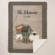 This cosy and warm sherpa blanket is perfect for your antique or primitive home. There's a green saltbox colonial house with a star in the peak, a canning jar filled with tags, a fluffy white sheep, a heart picture and lots of red pip berry vines. The background is done in a rustic look linen fabric with black and tan buffalo plaid, gingham check border. Personalise with your family name or first names and the year your family was established with the easy to use template provided. Several other coordinating designs are available in my shop, as well as matching pillows. You can find me at www.zazzle.com/digiscrapthat