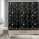 Personalise with a name or other text and spruce up your rustic theme bathroom with this shower curtain printed with a pattern of primitive pine tree shapes. Created in earth tone colours of tan, light blue grey and dark slate grey on a black background and a tan border. See other colour options and coordinating items in this design collection on Zazzle.