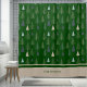 Personalise with a name or other text and spruce up your rustic theme bathroom with this shower curtain printed with a pattern of primitive pine tree shapes. Created in earth tone colours of tan, light blue grey and dark slate grey on a dark myrtle green background and a tan colour border. See other colour options and coordinating items in this design collection on Zazzle.