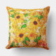Primitive Sunflowers Green Leaves Rustic Cushion