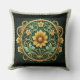 Primrose Guild Pillow, a luxurious accent piece that seamlessly blends timeless design with modern comfort. This exquisite pillow features an intricate Baroque pattern, showcasing swirling scrolls and floral motifs that pay homage to the grandeur of the Baroque era. The rich, deep green fabric is adorned with opulent gold detailing, exuding elegance and sophistication.