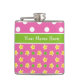 A Hip Flask to personalise, with pretty mix'n'match patterns: jumbo white polka dots on deep pink and a mini-print pattern of yellow primroses and green polka dots, also on deep pink. Part of the Posh & Painterly "Primroses" collection.