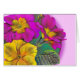 Painted primula / primrose art card. Painted on coloured board in gouache. Artwork is reproduced from original by Sarah Trett www.sarahtrett.com for www.mylittleeden.com