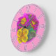 Delicate floral purple and yellow fine art printed botanical wall clock is perfect to embellish an interior room and to give it a ping of spring colour. Add a little tranquillity to a bedroom, lounge, or sun room with this original fine art wall clock.