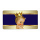 Royal blue and gold prince baby shower water bottle labels with adorable baby prince wearing a gold crown on a beautiful blue and gold background. You can add text to personalise these adorable baby boy prince water bottle labels, and you can change the background colour to whatever you prefer. Not for use in ice buckets - these are not water proof.