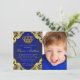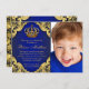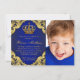 Royal blue and gold prince birthday party invitation with royal blue and gold crown on a royal blue and gold swirl background. This beautiful any number royal blue and gold prince birthday party invitation is easily customised for your event by adding your photo and event details, font style, font size & colour, and wording. This is a printed design with no real jewels, glitter, etc.