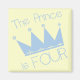 Prince 4th Birthday tshirts, magnets, sweatshirts, mugs, cards, stickers, and more with blue text that reads "The Prince is Four" and a royal prince crown!