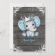 Very cute Prince Elephant/Peanut with a Silver Crown for Baby Shower with watercolor rustic flowers and wooden background. All fields are editable- you can have this invitation for a REGULAR Baby SHOWER by changing the wording. Suitable for birthday or Baby Showers, Diaper shower,sip and see.