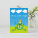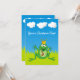 Prince frog cartoon with crown. Removable background elements (sky, grass, clouds). Custom text.
