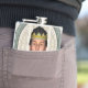 The flask itself is fine. It’s a cheap flask, obviously bought in bulk, however am prepared to overlook that. Given that it is a personalized item, I would have liked to have seen gift boxing instead of the generic packaging. Terrible printing, and/or quality. It’s a cheap, tacky vinyl. It is not cut straight and is also applied in a way that it is overhanging the bottom, causing the glue to catch on items and it will eventually roll and tear, damaging the wrap.