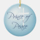 Christian religious holiday ornament with one of the biblical names of Jesus, Prince of Peace, in blue with personalised date or name on back, with cross accent in white. From the Christian Faith Gift Shop. Celebrate the Nativity by remembering the birth of our Lord and Saviour Jesus Christ.
