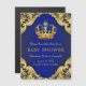 Prince baby shower save the date postcards with magnetic background and beautiful royal blue and gold crown and swirl background. You can easily customise these prince baby shower save the dates by simply adding your details in the font style and wording of your choice.