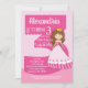 Cute girls 3rd birthday invitation featuring a pretty brunette princess on a large pink number with pink and white polka dot background.