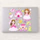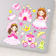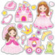 Fairy Tale Princess Stickers. Design in pink, gold, purple and green style with cute little princesses, magic castle, carriage, frog, crown and other elements. Ideal for scrapbooking, planners, gift packaging, card making, home decor and much more!