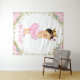Princess baby shower backdrop with adorable princess baby with pretty pink tutu and pearls on an elegant pink and gold floral background. This adorable princess baby shower backdrop is easily customised with the text of your choice. You can also change the background colour.