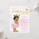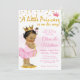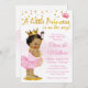 Princess baby shower invitations with adorable African American princess baby girl wearing a cute pink tutu and string of pearls on a lovely gold sparkle and diamond background.