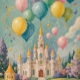 Pastel birthday bunting with a castle and balloons, perfect for any princess' birthday celebrations
