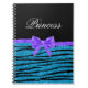 Princess blue glitter zebra stripes purple bow notebook