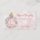 Very pretty pastel peach and white, on this girl's calling card, with a lovely princess in a pink dress and crown. The cute coloured text is fully customisable for your child and adds the right touch to this beautiful calling card / enclosure card.