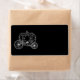 A picture in white of a pretty fairy tale coach for a princess. A whimsical fastasy design, the fairytale carriage picture is on a black background.