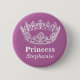 Pretty button pin done in rose pink, with a photo of a diamond crown. Bold white text reads, Princess, and name is in white italic text under it. Personalise the text to read anything you want. Great for your little princess's birthday party.