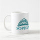 Girly, princess tiara mug for her- Both sides have same princess crown design with teal faux gemstones tiara over a matching, bold teal monogram name with lighter turquoise drop shadow. Fun birthday gift for teen girls. This teal royal princess design is available on other products in our online Zazzle.com/angela65 shop. Change white background colour if desired. Fun gift for coworkers at the office, too.