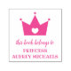 Cute bookplate rubber stamp with an image of a princess crown with a heart. Beneath, the book belongs to in a pretty script, and your child's name in charming block letters.