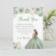 This sweet sixteen thank you card features a beautiful princess in a sage green ball gown with floral arrangements. This is perfect for a sweet sixteen birthday party.