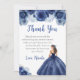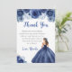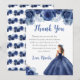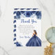 This sweet sixteen thank you card features a beautiful princess in a navy blue ball gown with floral arrangements. This is perfect for a sweet sixteen birthday party.