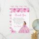 This sweet sixteen thank you card features a beautiful princess in a light pink ball gown with floral arrangements. This is perfect for a sweet sixteen birthday party.