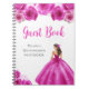 This quinceanera guest book features a beautiful princess in a hot pink ball gown with floral arrangements. This is perfect for a quinceanera birthday party.
