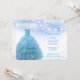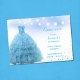 Surprise all your guests with this magical, light blue, princess gown design for the sweet fifteen honoree. Diamond glitz overlay on the dress, and glitter scatter in corners, under white string lights on white and blue wash background.
