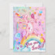 A pink magical unicorn birthday invitation for girls who love rainbows, diamonds, pink, magical creatures, unicorns and their friends! Personalise and invite them all to your birthday to celebrate a magical day!