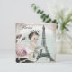 Sweet baby girl with rumba pants, hair bow, bunny slippers and princess crown on a pretty pink and teal blue vintage background. You can customise this adorable pink and teal blue vintage Paris baby shower invitation with your event details in the font style, font colour and wording of your choice.