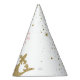 Personalised birthday party hat for a princess party that looks like you're wearing a gold crown with the birthday girl's age and name custom printed at the top of the hat.