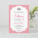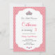 A pink Princess Party Invitation featuring a crown illustration and a diamond pattern background. Perfect for a girl's birthday party.