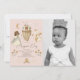 This boho and cute "Magical Day" girl's 1st/first birthday photo invitation features a dark skin princess with a wand, dragon with a crown, flying castle, and carriage on a light pink background. The reverse side features a pink background with fairytale patterns. Personalise it for your needs. You can find matching products at my store.