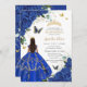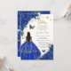 Princess Quinceañera Royal Blue Roses Dress Gold Invitation