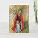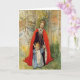 Portrait of mother in a "red riding hood" cape wearing a crown holding hands with her little girl. Vintage watercolor by Swedish artist Carl Larsson.