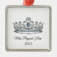 This silver-colored premium metal ornament is shown with a sparkling crystal tiara with black text on a white background.