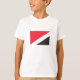 100% cotton so perfect for summer, It is a nicely designed t-shirt, the fabric is soft and the seams finished well, the body of the t shirt has no side seams. I bought a medium size for my two grandsons, aged 9 and 8 it will be slightly big on them but I would rather that than too small