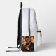 Lightweight and durable, our custom all-over-print Backpack is just what you need. The spacious interior is ideal for travel, school, gym, or any mobile storage need. Bring your stuff with you in style! Features Adjustable padded shoulder straps, two chambers on the inside for laptop storage, mesh side pockets and an identification label.