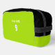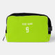 Introducing our sleek lime green accessory pouch, a must-have for football lovers! With a bold football logo on one side, it shows off your passion for the game. Personalise it by adding your team name or the recipient's name on the other side, making it a special gift. This durable bag is perfect for carrying football gear or as a stylish travel companion.