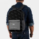 White Monogram Initials Grey Pattern Black Luggage Tag. Elegant simple basic modern and masculine black and white design, with custom text and monogram, with a exclusive monogram pattern, perfect gift for travelers, for him, dad, grandpa, brother,friend,boss,employee, or coworker.